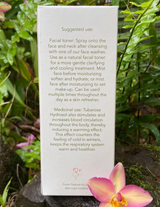 The pleasant fragrance and various chemical components of this hydrosol have relaxing effects on the brain, nerves and the muscles. It calms and gives relief from stress, tension, anxiety, depression, anger, nervous afflictions, convulsions, cramps and spasmodic coughs.The skin benefits are anti-inflammatory, anti-bacterial and hydrating.