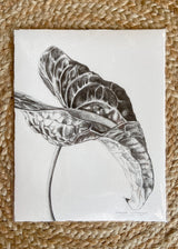 Although simple in form the anthurium in black and white graphite becomes a study of shadow, curves, and light.