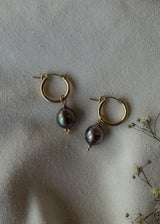 Tahitian Pearls hang from gold berry charms, each one made individual by the artists hands.