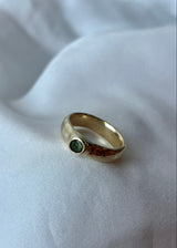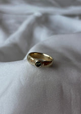Hand-crafted in solid 14k gold, this one of a kind ring by Karoline of Arcana Offerings features a rare 2.7mm Moldavite stone, glowing in its signature deep green hue.
